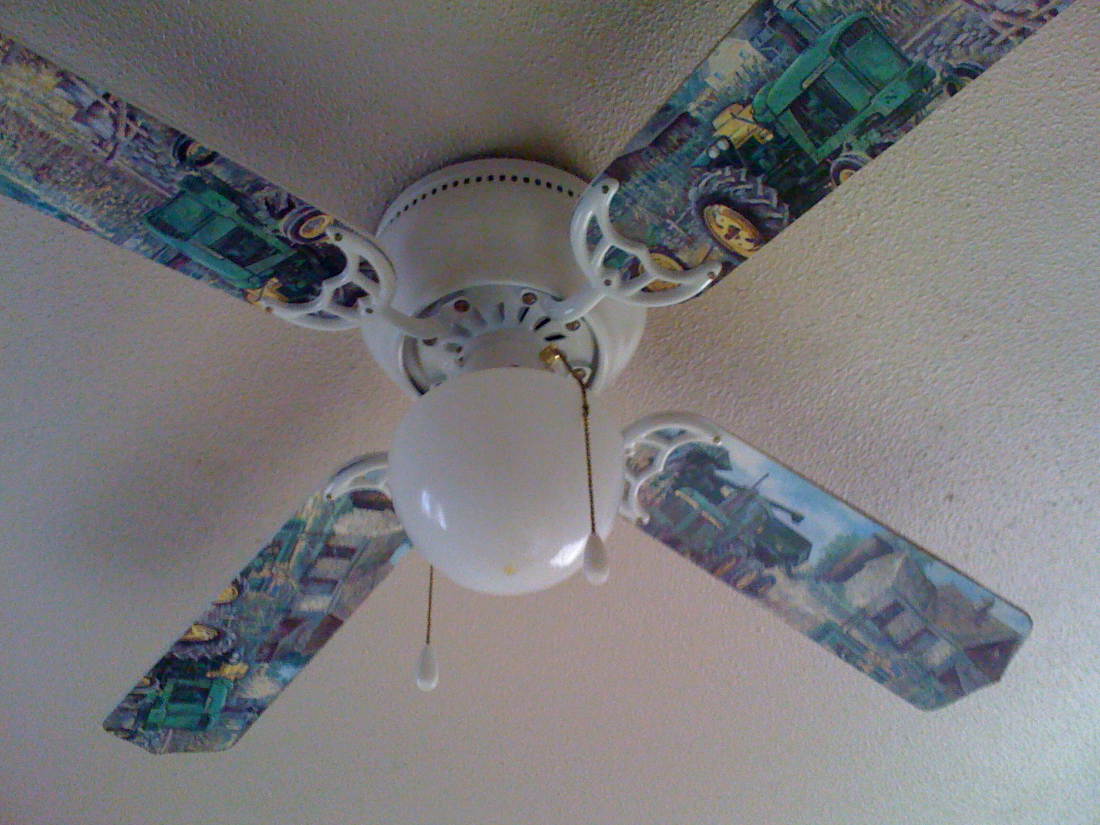 Previous Image Next Image A68D53DE-B06B-4112-9F6A-7EA284AD8FF5 Every ceiling fan was appliquéd in John Deere patterns, how unique.