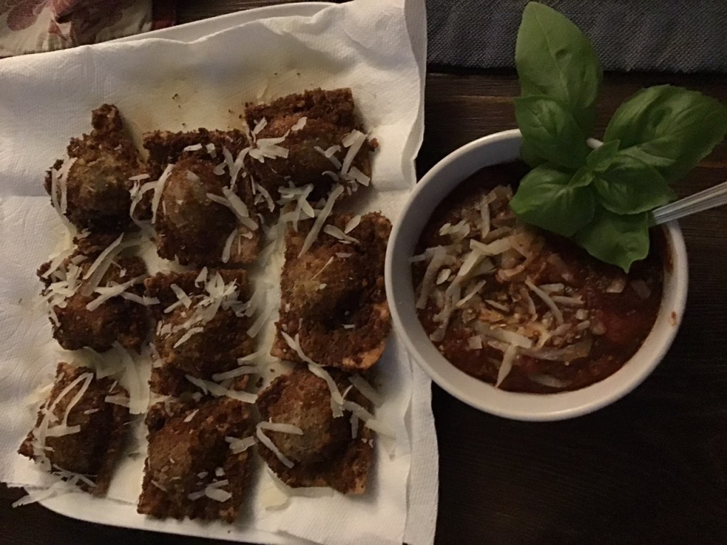 Ravioli is not a finger food, you might be thinking? But, toasted ravioli is! Which is why I had Mom on the mind, because it reminds me of growing up in the suburbs of St. Louis, from where this popular dish originally hails. It was on the menu of every bar and pizza joint in the region. We ate it often, and it’s so delicious.